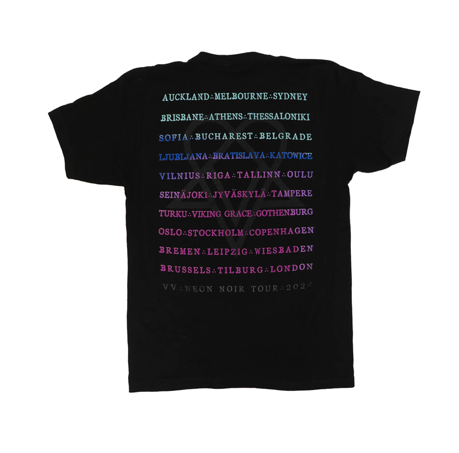 The VV Tour Tee showcases a striking design on the front and a comprehensive list of tour dates on the back. This tee is the perfect way to commemorate the VV 2024 EU tour.